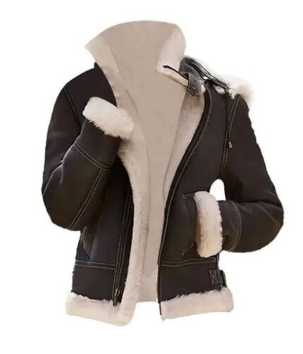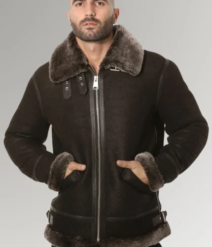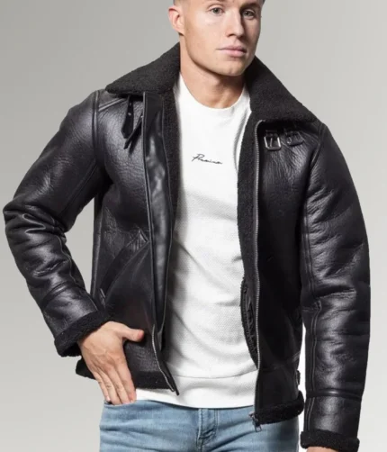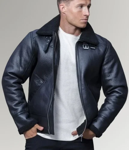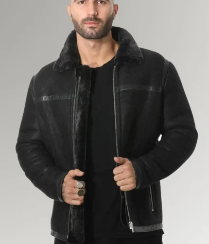 Jenkins Men’s Black Aviator B3 Bomber Shearling Leather Jacket
