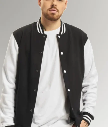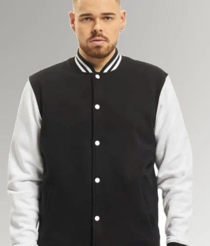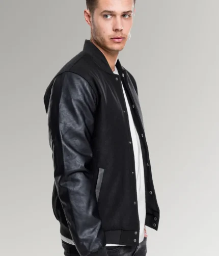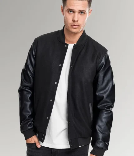 Jimenez Black Urban Men’s College Jacket With Leather Sleeves