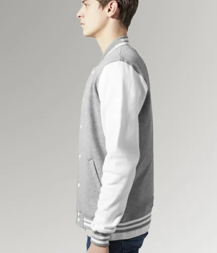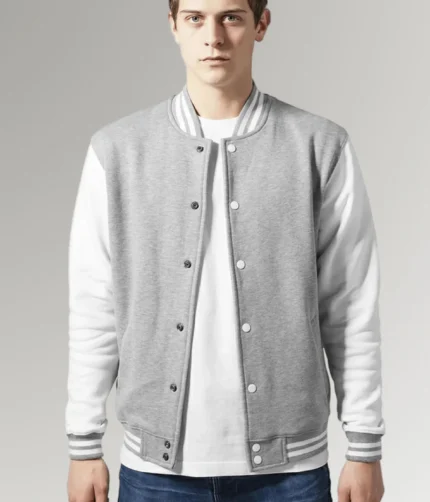 Marcus Men’s Grey and White Varsity Jacket with Erect Collar