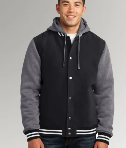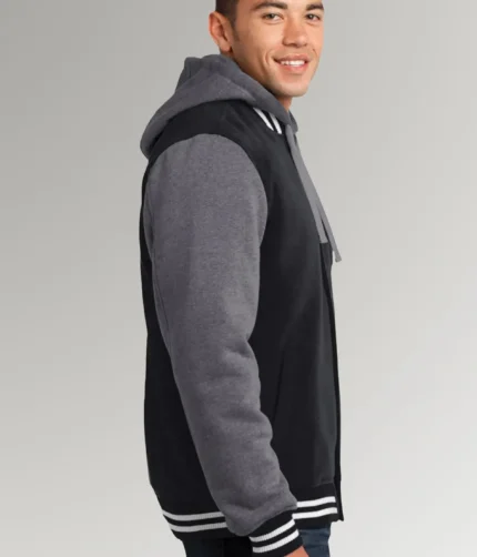 Hudson Men’s Grey/Black Vintage Varsity Hooded Letterman Jacket