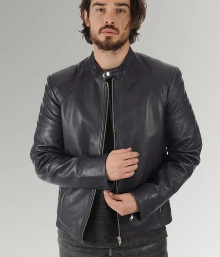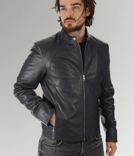Brett Young Men’s Black Cafe Racer Biker Leather Jacket