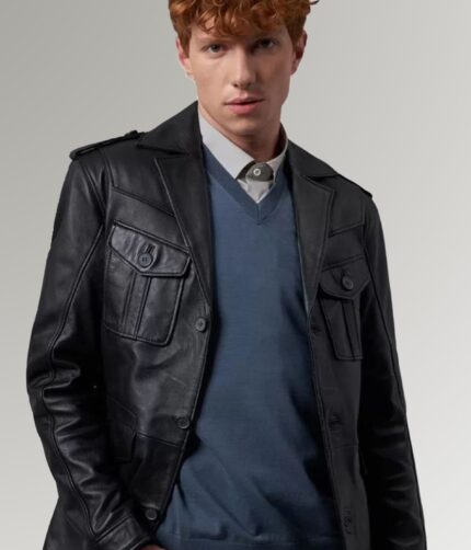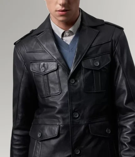 Hawkins Men’s Classic blazer style buttoned Leather Jacket