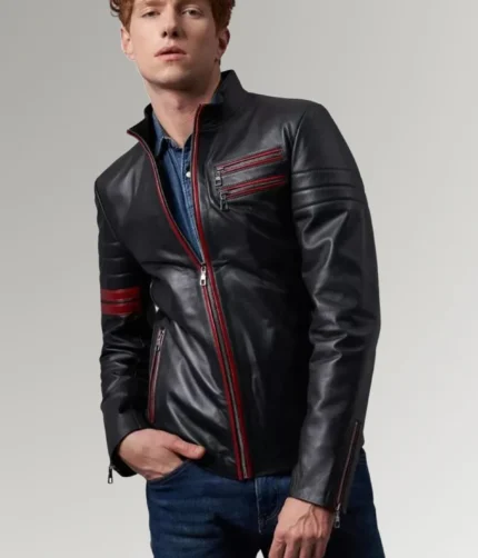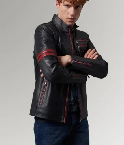 Murphy Men’s Black Red Stripes Motorcycle Leather Jacket