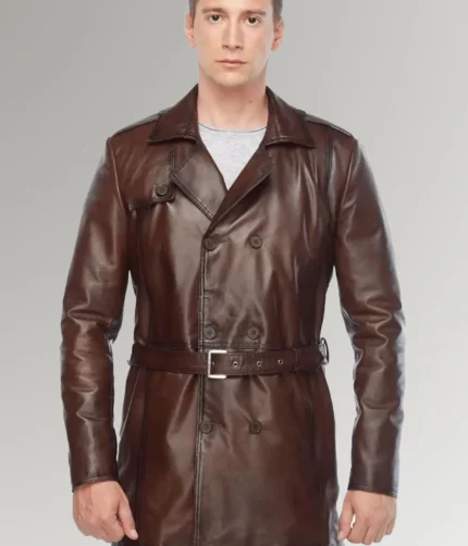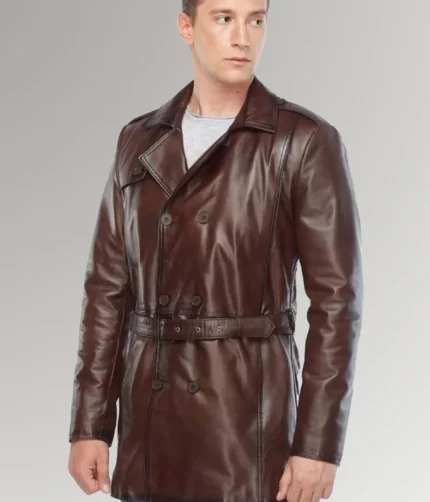 Medina Men’s Brown Waist Belted waxed Blazer Stylish Trench Coat