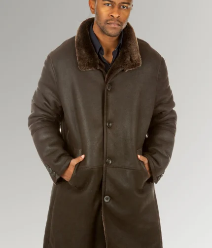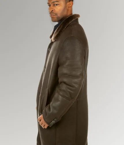 Alex Heels Men Shearling Brown Blazer Style Leather Coat