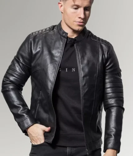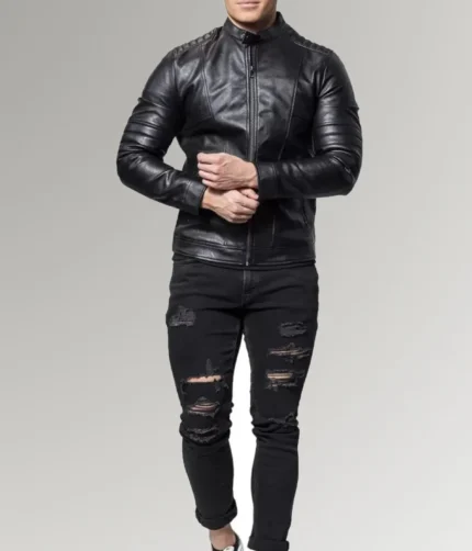 Butler Black Quilted Cafe Racer motorcycle Leather Jacket