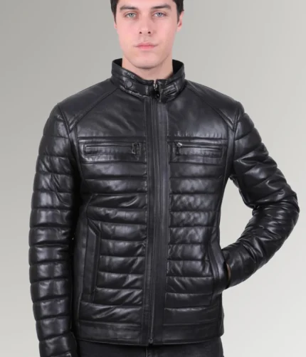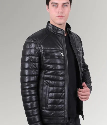 Clark Men’s Puffer Bomber Quilted Leather Jacket