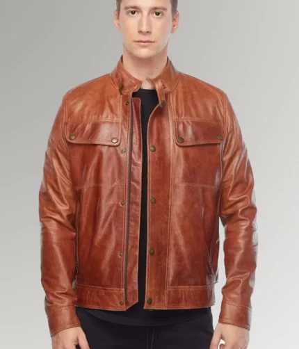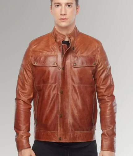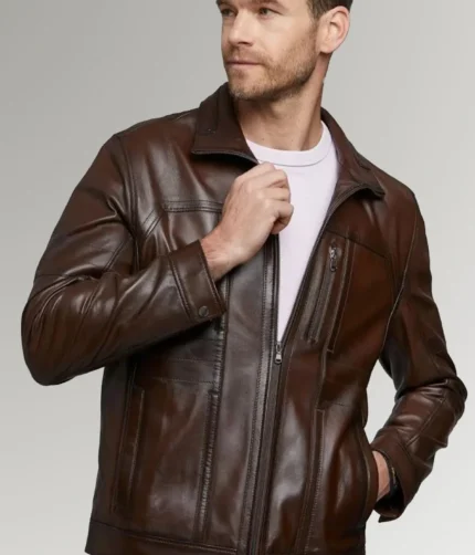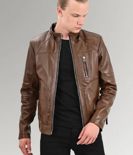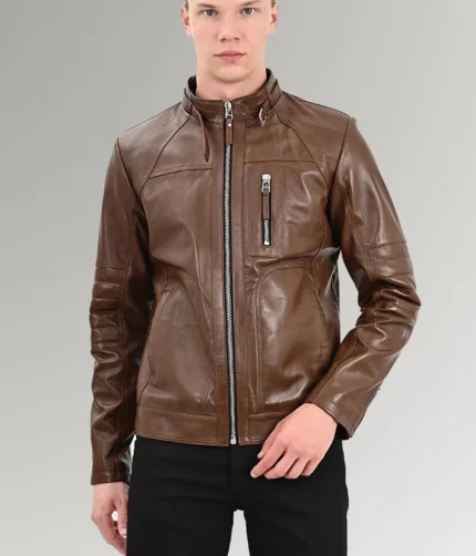 Cunningham Brown Lambskin Zipper Leather Jacket Men’s