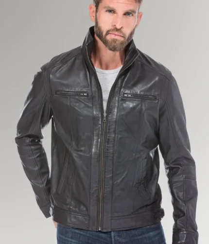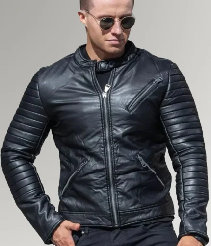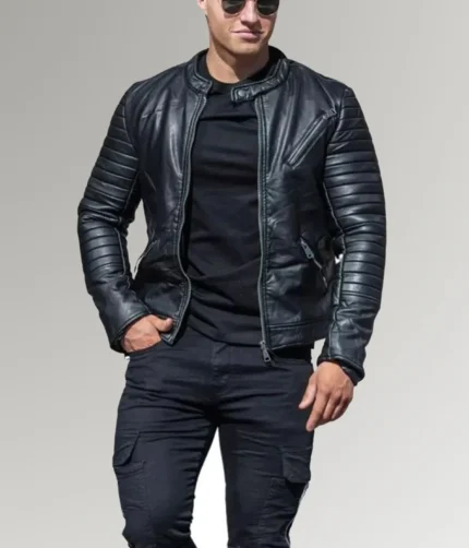 Tony Lane Men’s Black Biker Cafe Racer Quilted Leather Jacket
