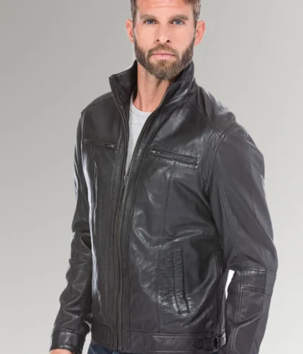 Scott Men’s Black Coat Style Motorcycle Leather Jacket