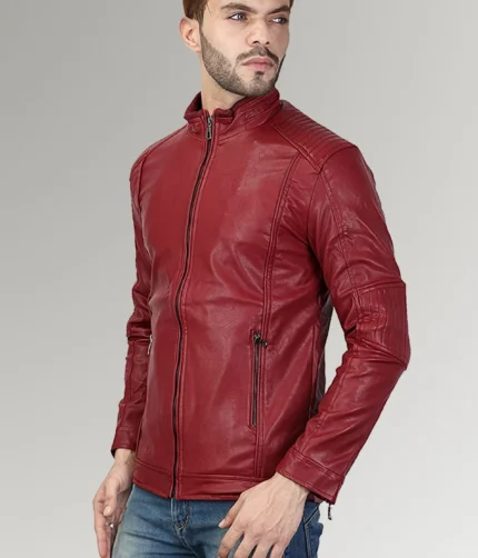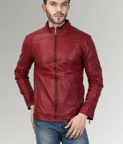 Trelawney Red Cafe Racer Leather Biker Jacket