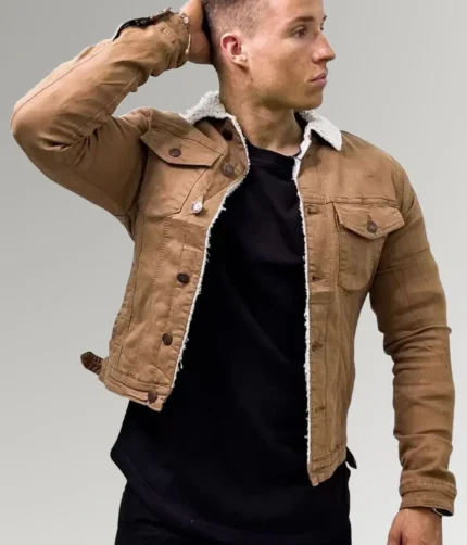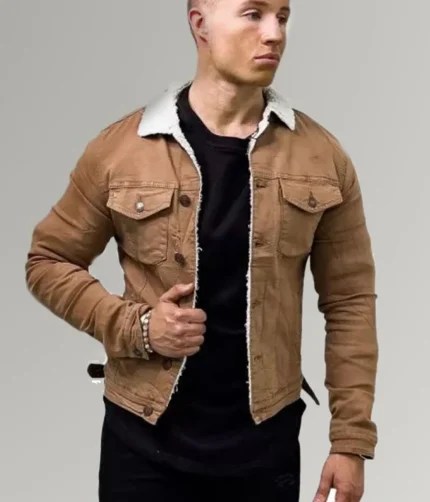 Diaz Men’s Brown Aviator Teddy Cotton Jacket with Fur Collar