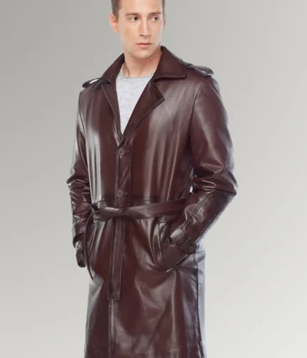 Porter Paul Vintage Waist Belted Waxed Leather Trench Coat 01
