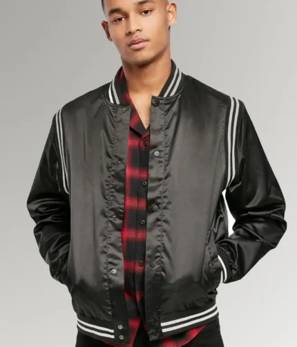 Bradley Men’s Black Trendy Vintage Style Varsity Satin Jacket