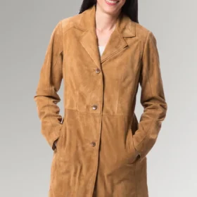 This Women’s Suede Leather Long Coat absolutely blows my mind in terms of its design, color, and overall appearance. Your sense of style can benefit from wearing this Tan Brown Long Coat because of how it looks and how it is styled. It works wonderfully both for going out and for wearing about the house.