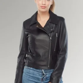 The Amy Drake Women’s Black Biker Shirt Collar Leather Jacket is the ideal piece of outerwear for any anyone who has a passion for motorcycles. It closes in the front with a zipper, has a shirt collar made of leather, two zipper pockets on the outside, and one pocket on the inside. The full sleeves provide you the ability to ride in style without restricting your movement or making you feel too hot or uncomfortable. You won’t feel any discomfort throughout the day because to the viscose lining.