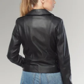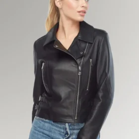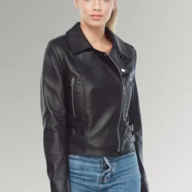 Amy Drake Women’s Black Biker Shirt Collar Leather Jacket
