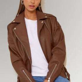 The Anastasia Women’s Brown Lapel Collar Leather Jacket is ideal for the biker girl or woman who wants to exhibit her rough side. This jacket features a brown color with a lapel collar. This jacket has a zipper that runs down the front, making it simple to get in and out of it, as well as two pockets that have zippers, and a lapel collar that adds an added touch of elegance. This jacket is crafted from high-quality leather, so it will keep you toasty even on the chilliest of days. Your skin will remain in a comfortable state throughout the day thanks to the viscose lining.