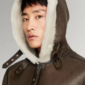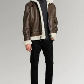 - Andrews Brown B3 Bomber Real Shearling Leather Jacket with Hood.