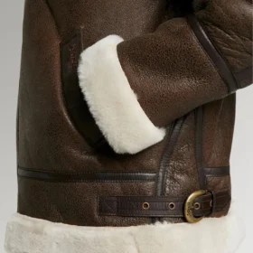 Due to the fact that the jacket is constructed entirely out of genuine sheepskin leather and is padded with genuine shearling, its primary function is that of a windbreaker and insulator. The jacket includes a shearling hoodie and a shearling outlined border at both of the cuffs. This helps to keep the heat inside the body and the cold outside the body. In addition to that, the front zipper closure of the jacket is joined to twin belted straps that wrap over the collar. The jacket includes two side pockets that are tilted to the side, which adds to its functionality. There are two waist belts on the side for making modifications to the fit. You should make sure that your wardrobe always contains at least one garment that makes a fashion statement, such as the Andrews Brown B3 Bomber Real Shearling Leather Jacket with Hood.