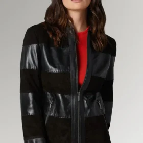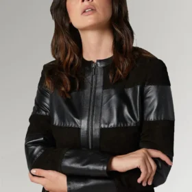 Because it is fashioned from a unique combination of suede that has a texture similar to velvet and lambskin that has a glossy finish, this item is impressive not only in terms of its beauty but also in terms of the level of comfort it provides. In addition, this coat has two zipped pockets on the side and a full front zip-up closing, both of which contribute a little bit of style as well as some practicality to the overall design.