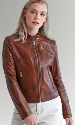The Ashley Judd Biker Leather Jacket for Women is an excellent choice for women who want to look their best while still enjoying the great outdoors. This jacket is crafted from leather and features a stand-up collar, front zipper closure, full-length sleeves, three pockets on the exterior, and one pocket on the interior. You won’t feel chilly or uncomfortable at any point in the day thanks to the viscose lining.