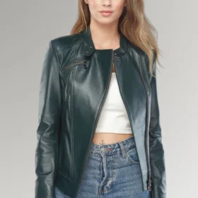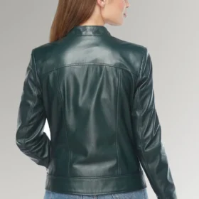 Bella Women’s Green Biker Leather Slim Fit Jacket