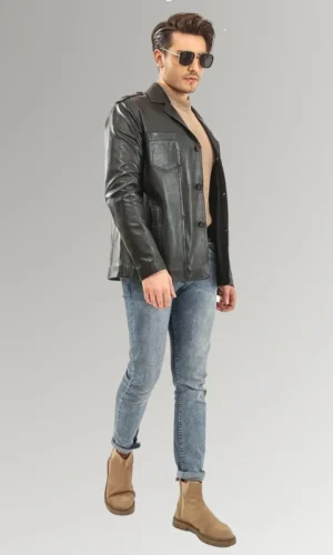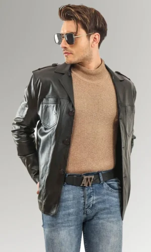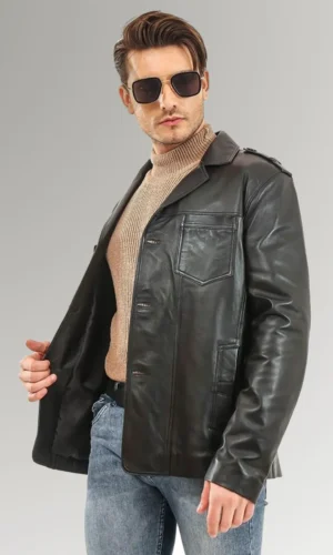 This Billy Formal Coat is constructed with 100% genuine sheepskin leather and a plush viscose lining to ensure that the coat is not only easy to wear but also keeps you warm enough. The coat has a matt black color, which lends it an air of decency and makes it suitable for formal occasions. The combination of the traditional lapel collar with the button closure gives it an overall classy look that is ideal for a man who is dedicated to his work. In addition to that, the coat features four roomy pockets, each of which has a unique design. When the temperature drops, it might be difficult to keep up with it while still retaining one’s sense of style. This is the primary selling point for this product. Therefore, make the investment in the Brooks Black Blazer Formal Style Coat, and you will never regret it throughout the entire winter season.