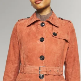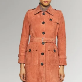 This Red Orange Suede Coat is an excellent choice for the colder months of the year.