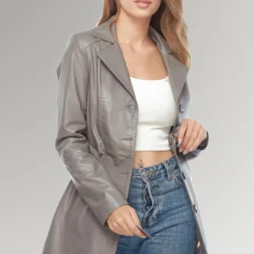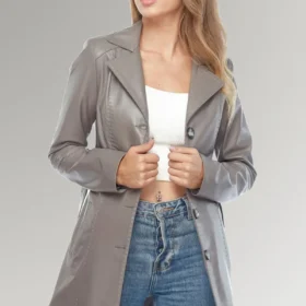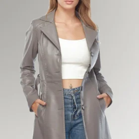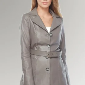5 reviews for Claire women’s Grey Belted Leather Trench Coat
