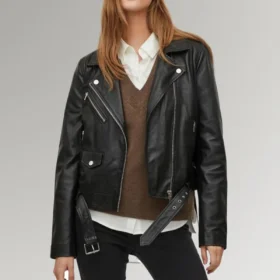 Palmer Women’s Black Side Belted Biker Leather Jacket