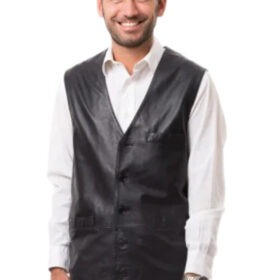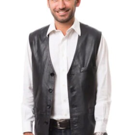 Introducing the black leather vest by Zachary Theo, the ideal addition to your closet for any occasion. This fashionable and cosy vest has a front button fastening, three exterior pockets, and one interior pocket, providing you with a lot of storage possibilities. This item is made of fine leather and has a viscose lining for added warmth and comfort. This adaptable vest will have you looking your best whether you’re going out or working out.