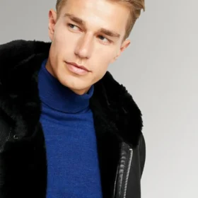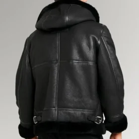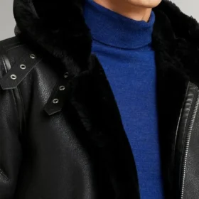 Black shearling leather jacket with a black hood, featuring the Cooper Black B3 Bomber design. There is nothing in fashion that is simultaneously more eco-friendly and on-trend than a leather B3 Bomber Black Hood Shearling Jacket. If you want to put up a good battle against the elements and your rivals, you really need to get your hands on one of Super Jacket’s B3 Bomber Black Hood Shearling Jackets. The each Roger Black B3 Bomber Real Shearling Jacket is one of the exclusive masterpieces created by Super Jackets. It is a bomber jacket style that features real shearling and will immediately improve the way you look.