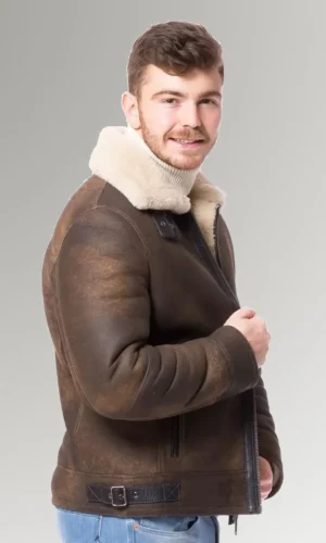 The Cruz Distressed Brown Shearling Waxed Bomber Leather Jacket is the ideal piece of outerwear for anyone who desires a worn-in appearance combined with a contemporary vibe. This jacket is crafted from high-quality leather, and it features a stand-up collar and a front zipper fastening for a genuine appearance. The two pockets on the inside of the bag are ideal for holding your phone or any other tiny stuff, while the three pockets on the outside of the bag are wonderful for storing your belongings.