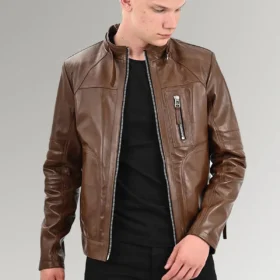 The Cunningham Brown Lambskin Zipper Leather Jacket Men’s is a stunning piece of outerwear that has been expertly manufactured and constructed with high-grade leather. The fur collar has a shearling inside, so it will keep you warm on chillier days, and the front buttons create a clasp that gives the coat an attractive appeal. The full-length sleeves and two pockets on the exterior make it simple to store your items, while the pockets on the interior add an additional layer of warmth.