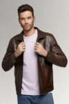 The Davis Dark Brown Leather Jacket is a classic and elegant garment that can be styled in a variety of ways, depending on the occasion. The stand-up collar and front zipper closure give any ensemble a contemporary touch, and the five total pockets—three on the outside and two on the inside—ensure that it is simple to access everything you require. On chillier days, the viscose lining helps keep you warm, and the wide sleeves protect your arms from the elements.