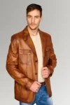 Gardner Mens Brown Waxed Leather Vintage Blazer Stylish Coat