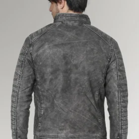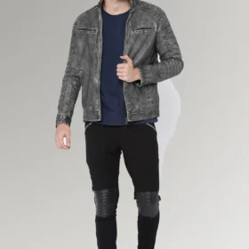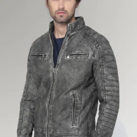 Gonzalez Men’s Grey Zipper Waxed Leather Jacket