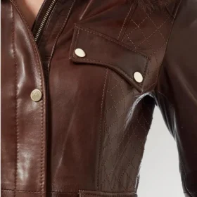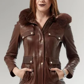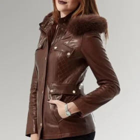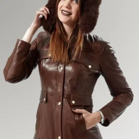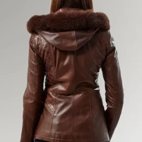 Hayes Women’s Shearling Collar Hooded Stylish Vintage Leather Jacket Jacket