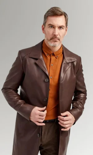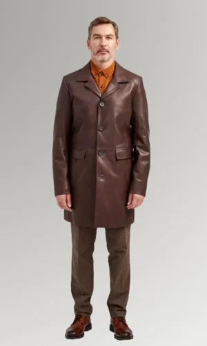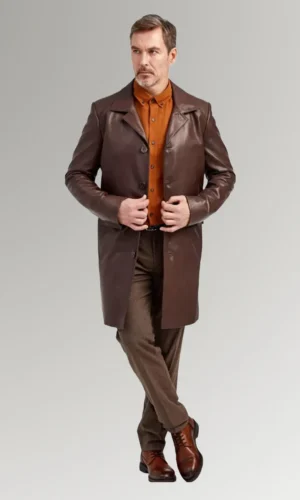 James Brown Blazer Stylish Mid Lenght Leather Trench Coat For Men’s