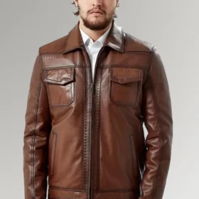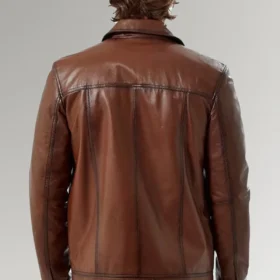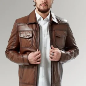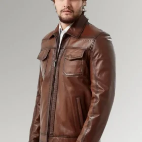 This is the perfect coat for you if you want to make a bold fashion statement while wearing a coat this season. The front of the Jazz Vick Men’s Brown Waxed Vintage Leather Blazer Jacket may be closed with a zipper, and it has a shirt collar and four pockets on the outside. Additionally, it has two pockets on the interior for additional storage space. The coat is constructed from high-quality leather and has a viscose lining to ensure that you remain toasty and comfortable even when the weather turns chilly.