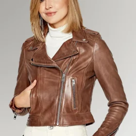 Joanne Merritt Women’s Brown Biker Leather Jacket