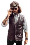 Any man’s closet would benefit from the Keith Powell Waxed Leather Vest Coat. This adaptable vest has two outside pockets and a front button fastening so it may be worn both formally and casually. The interior pockets are ideal for storing your wallet, cell phone, and other small necessities. This vest is surprisingly comfy to wear all day thanks to the viscose inside.