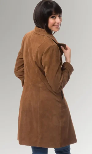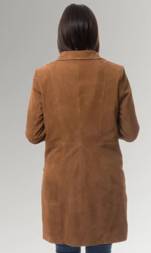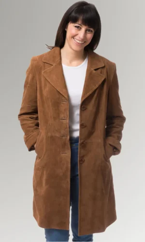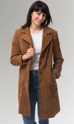 This suede and leather long coat is a timeless piece that will look great on women of any age. It is a timeless piece of outerwear that is an excellent option for both formal and casual settings, and the purchase of it is something that you will never come to regret