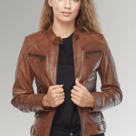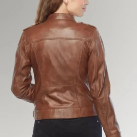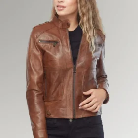 Lily women’s Brown Slim Fit Biker Leather Jacket