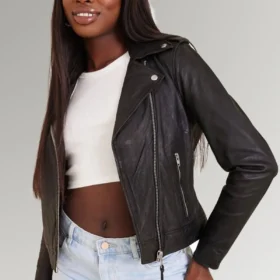 The Lisa Women’s Biker Racer Leather Jacket is Now Available for Women! This fashionable jacket is crafted from leather of the highest possible quality, and it has zippers not only at the front but also at the cuffs, and it also has three pockets that have zippers. Warmth and softness are provided by the viscose lining, and an additional storage space can be found in the inner pocket. This jacket is ideal for you if you want to look good while staying warm on chilly days, whether you’re out riding your bike or just need a stylish layer to wear.