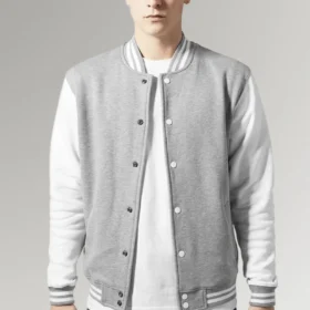 Marcus Men’s Grey and White Varsity Jacket with Erect Collar