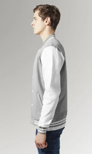 Marcus Men’s Grey and White Varsity Jacket with Erect Collar