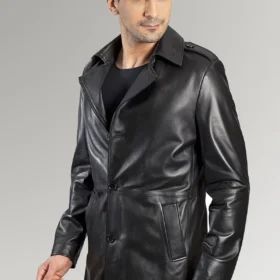 This coat is a windbreaker because of the material that it is made of and the big lapel and Brando-style collar that it has. Neither of these features allow any chilly breeze to enter. Because of the style of its double breasted button closing, it helps to retain your body heat, letting you to enjoy yourself in comfort. The Brad Black Coat has a variety of pockets in different styles sewn onto the outer skin, and the inner lining has a pair of pockets. Because it is matte black, it will make you look even more stylish and sophisticated. The style of the belted waist gives it a look that is reminiscent of bygone eras. This winter, there is no excuse for you to pass up the opportunity to add the daring and sophisticated McDonald Black Long Coat with Brando Style Collar to your collection of outerwear.