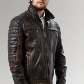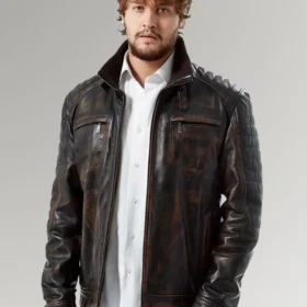 3 reviews for Mendoza Men’s Dark Brown Waxed Quilted Vintage Leather Jacket
